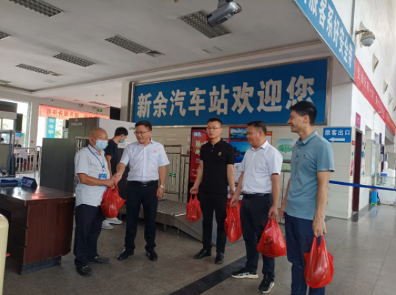 7月19日上午,烈日炎炎,新余長運董事長周錦生一行前往一線汽車站、修理廠、檢測車間等處,將綠豆、冰糖、花露